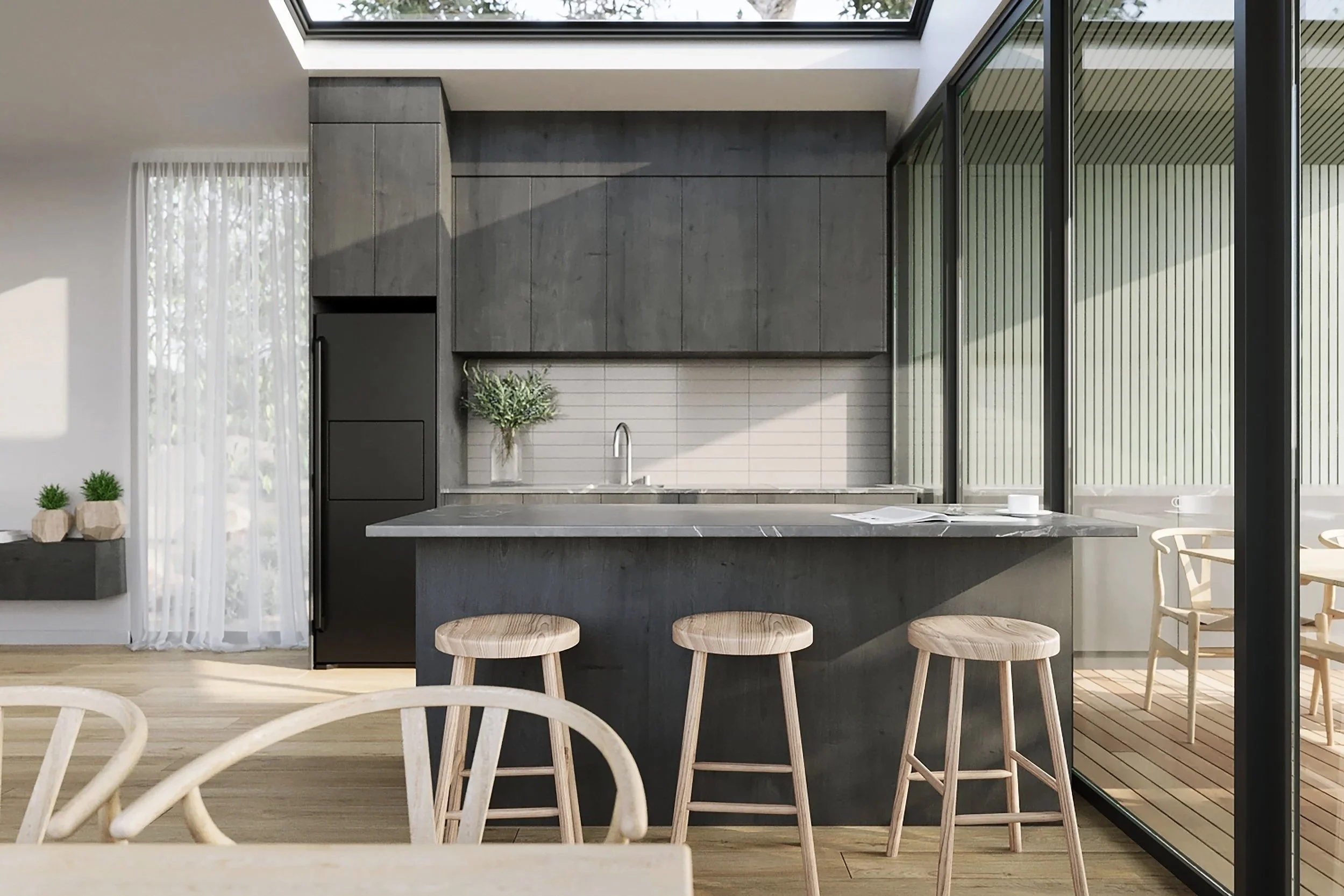 The Mornington is a compact but spacious 2-bedroom cabin that comfortably sleeps 4, making it the perfect choice for your family weekend getaway. Featuring a substantial curved island bench that doubles as a dining table, The Mornington has space-efficiency at the forefront. All of our cabins come with a Velux skylight over the kitchen, alfresco area and double glazed windows as standard. See below to read more.